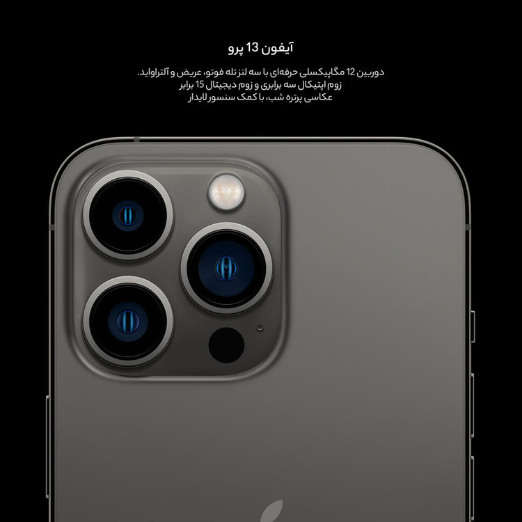 آیفون 13 پرو مکس، آیفون 13 پرو، آیفون 13 و آیفون 13 مینی از محبوبترین گوشیهای هوشمند شرکت اپل شناخته میشوند. آیفون 13 پرو مکس بدون شک به مشخصات فنی قدرتمندتری به نسبت مابقی اعضای این خانواده مجهز شده است. البته، گوشیهای این خانواده از نظر طراحی تفاوت چندانی با نسل قبلی پرچمداران این شرکت ندارند و تنها وجه تمایز در بین این گوشیها به استفاده از ناچ با عرض کمتر خلاصه میشود. آیفون 13 پرو به صفحهنمایشی 6.1 اینچی با رزولوشن 2532x1170 پیکسل مجهز شده است و همچنین برای اولین بار در تاریخ گوشیهای هوشمند اپل، شاهد به کار گیری صفحهنمایشی با توانایی ارائه نرخ بروزرسانی 120 هرتز هستیم. این صفحه نمایش بدون شک میتواند عملکردی بسیار روانتر و به مراتب باکیفیتتر به نسبت نسلهای قبلی خود ارائه کند. این صفحهنمایش توانایی ارائه حداکثر میزان روشنایی 1200 نیت (شمع در متر مربع) را دارد که همین امر سبب میشود تا در شرایط نوری متنوع و حتی زیر تابش مستقیم نور خورشید هم، وضوح تصویر بسیار خوبی داشته باشد. در قسمت پشتی این گوشی سه سنسور دوربین به همراه یک سنسور LIDAR با همان طراحی آیفون 12 پرو مکس قرار گرفتهاند. یک سنسور دوربین اصلی با رزولوشن 12 مگاپیکسلی با گشودگی دریچه دیافراگم f/1.5، سنسور دوربین 12 مگاپیکسلی از نوع فوق عریض (Ultra Wide) و سنسور 12 مگاپیکسلی از نوع تله فوتو، دوربین سهگانه آیفون 13 پرو را تشکیل میدهند. پردازنده A15 بایونیک هم اینبار قدرتمندتر از همیشه با شش هسته (2 هسته قدرتمندتر و 4 هسته با صرفه انرژی کمتر) این پرچمدار قدرتمند را همراهی میکند. گوشیهای نات اکتیو با قرار گرفتن سیمکارتهای داخلی اکتیو میشوند و برخلاف مدل اکتیو پلمپ کالا باز نشده است. گوشیهای اکتیو برند اپل هم به این شکل هستند که به دلیل محدودیتهای برخی از محصولات اپل برای کشور ایران، در کشورهای همسایه بهصورت رسمی با یک بار قرار گرفتن سیمکارت، اکتیو شده و پلمپ میشوند و باید بدانید که این پروسه هیچ مشکلی در راستای گارانتی کالا بههمراه ندارد. پارتنامبرهای اروپا و ژاپن و امارات تک سیمکارت هستند و پارتنامبرهای مربوط به امارات هم از فیس تایم پشتیبانی نمیکنند. پارتنامبر JA (ژاپن) هم حتی در حالت سایلنت صدای شاتر عکس قطع نمیشود.
