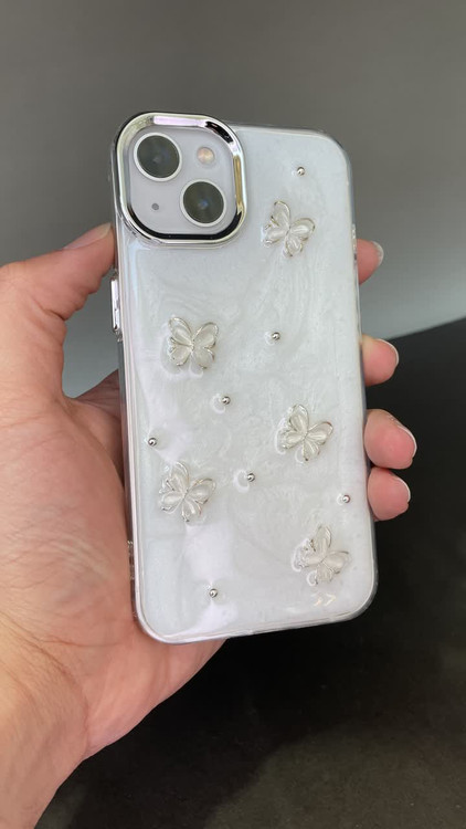 گارد آیفون فانتزی نگینی طرح پروانه سفید