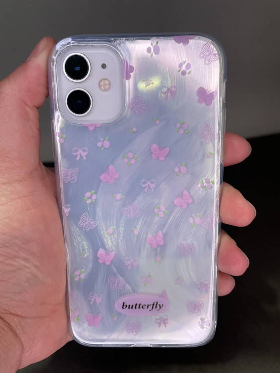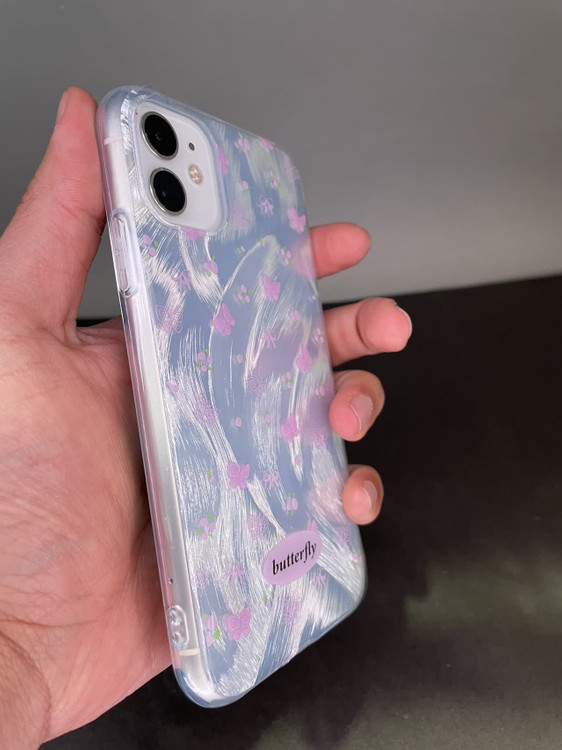 گارد آیفون فانتزی سفید پروانه صورتی